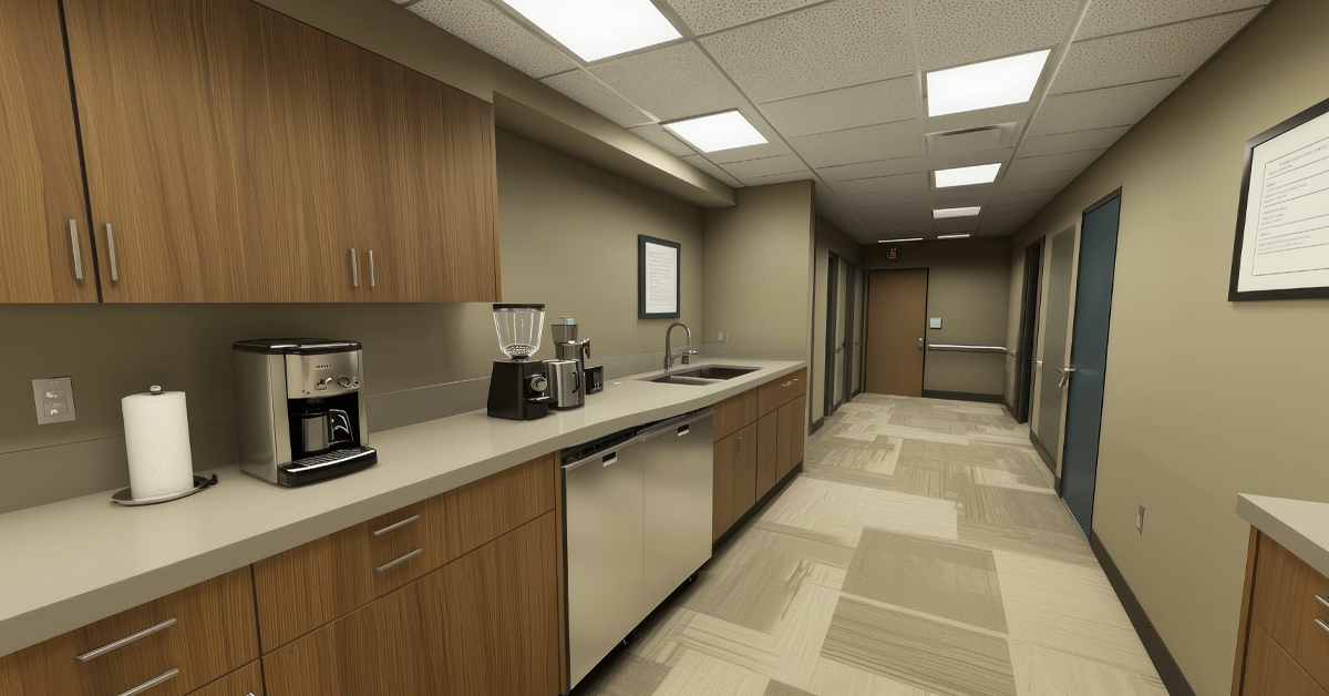 Breakroom & Kitchenette Cleaning: Wiping down counters, cleaning sinks, and keeping appliances spotless so your team can enjoy a pleasant, sanitary space.
